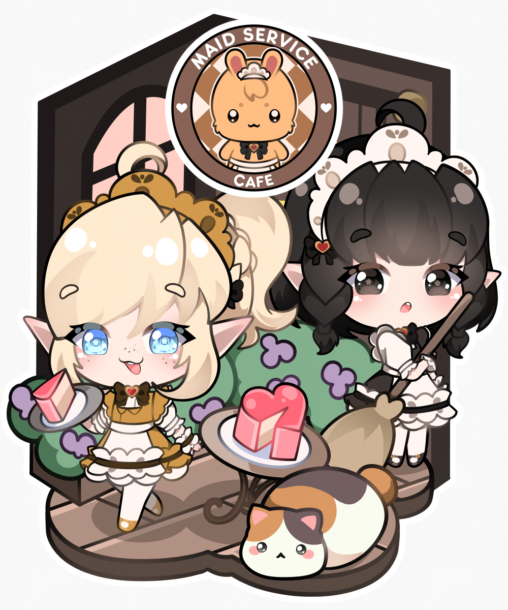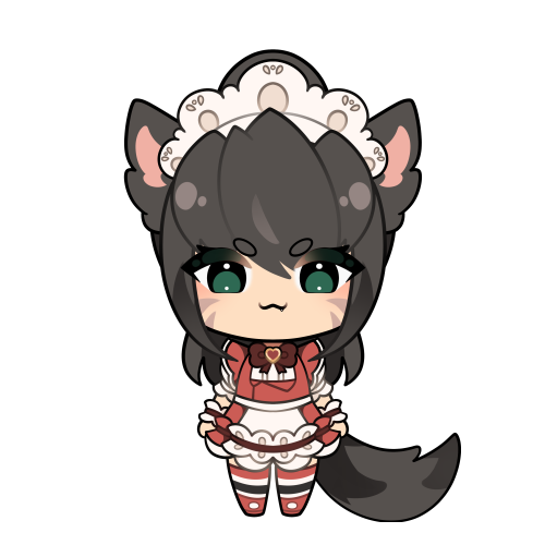 The door maid. She is going to welcome you to Maid Service Café. Please be careful with your minion, Nev is the world-eater. Always hungry but will get really happy with some headpats.